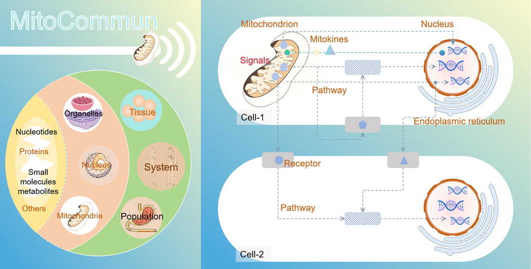 Mitochondria are cellular organelles that play a crucial role in energy metabolism and also participate in cell signaling. Mitochondria can release various signaling molecules, such as reactive oxygen species (ROS), mitochondrial DNA, mitochondrial transcription factors, and metabolites, which can be transmitted into the cytoplasm and the cell nucleus, influencing diverse processes such as gene expression, cell cycle, and apoptosis. Herein, we propose the concept and framework of Mitochondrial Signal Communication (MSC) to systematically decipher and understand the signaling communication of mitochondria. Furthermore, we construct the MitoCommun database, including 580 mitochondrial signal entries in Homo sapiens, Mus musculus, Rattus norvegicus, and Caenorhabditis elegans, to offer user-friendly browsing and searching functions to support various mitochondria-based applications.